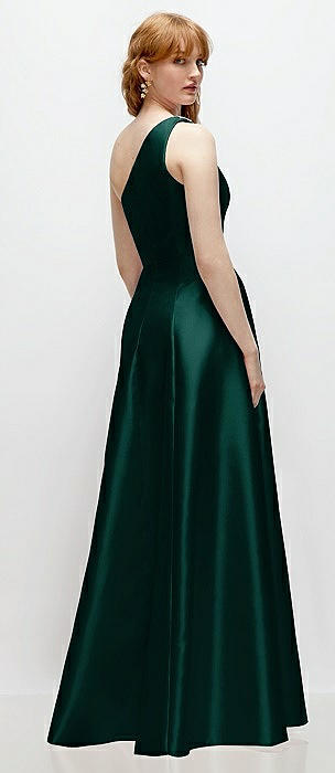 One-Shoulder Cat-Eye Neckline Fit and Flare Satin Maxi Dress in evergreen