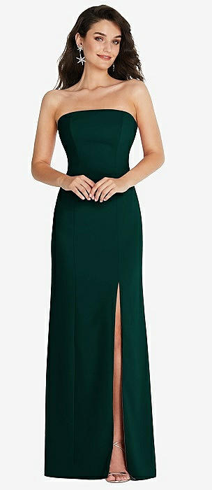 Strapless Scoop Back Maxi Dress with Front Slit in evergreen