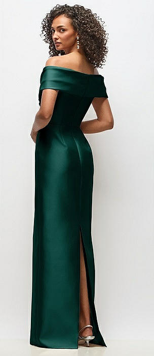 Off-the-Shoulder Cuff Trumpet Gown with Front Slit in evergreen