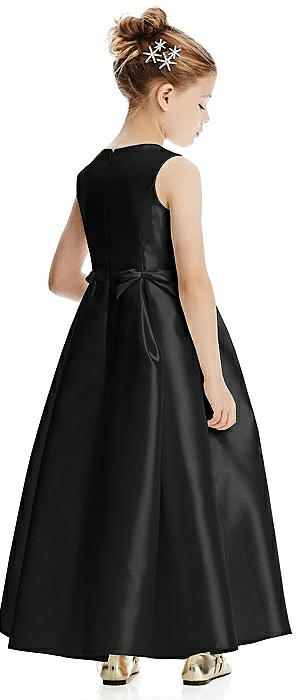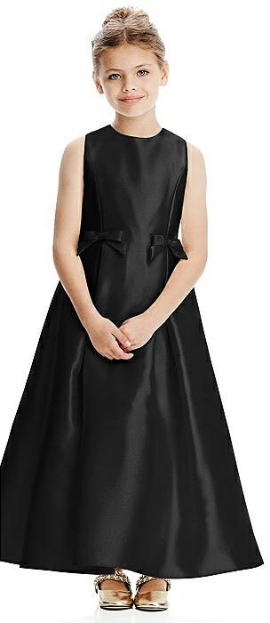 Princess Line Satin Twill Flower Girl Dress with Bows in black