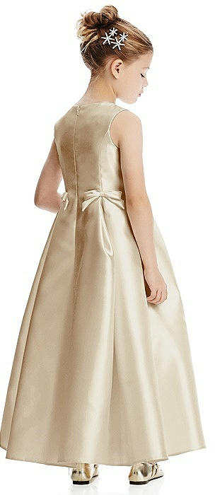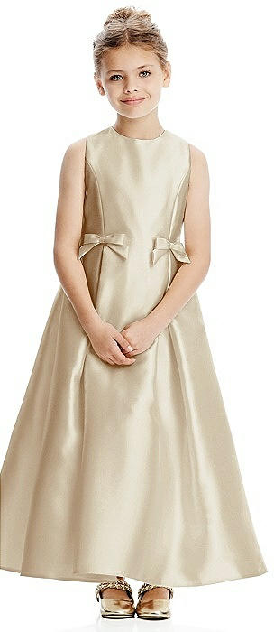 Princess Line Satin Twill Flower Girl Dress with Bows in champagne