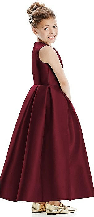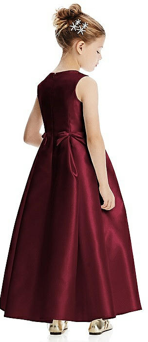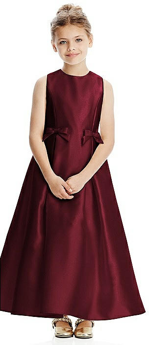 Princess Line Satin Twill Flower Girl Dress with Bows in cabernet