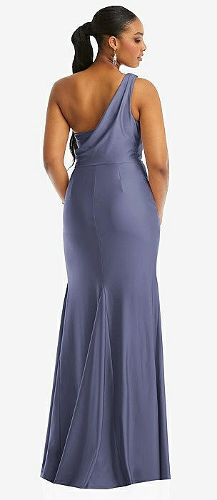 One-Shoulder Bias-Cuff Stretch Satin Mermaid Dress with Slight Train in french blue