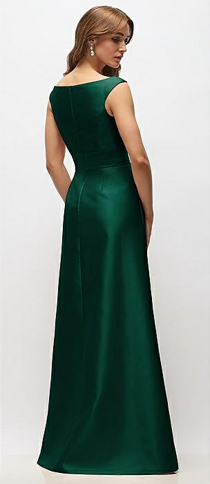 Basque-Neck Satin Column Maxi Dress with Off-the-Shoulder Bows in hunter green