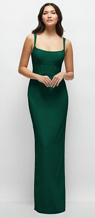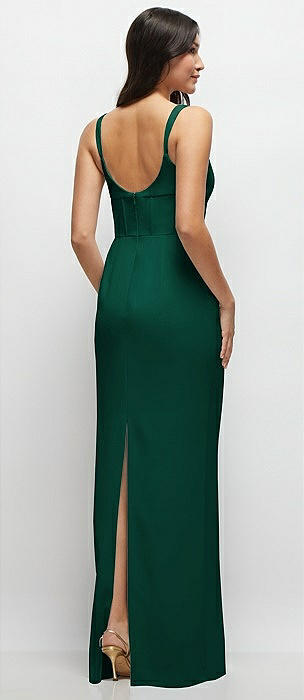 Corset-Style Crepe Column Maxi Dress with Adjustable Straps in hunter green