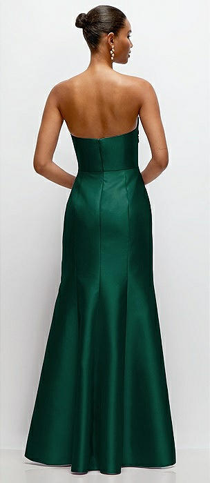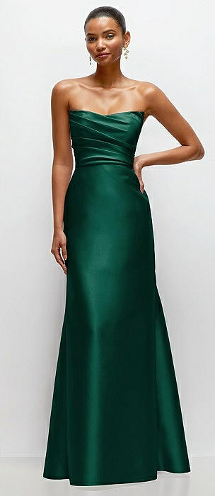 Strapless Cat-Eye Draped Bodice Satin Tumpet Dress in hunter green