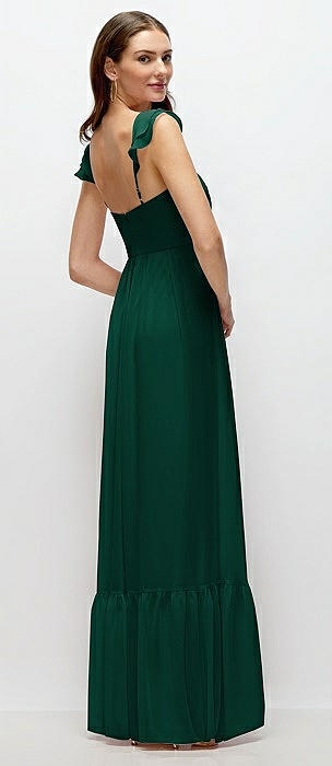 Tiered Chiffon Maxi A-line Dress with Convertible Ruffle Straps in hunter green