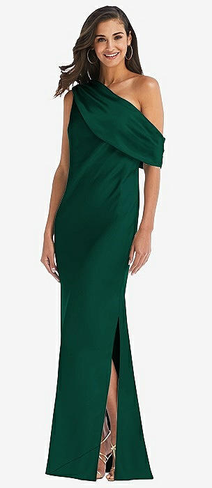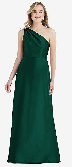 Shirred One-Shoulder Satin Trumpet Dress - Maddie in hunter green