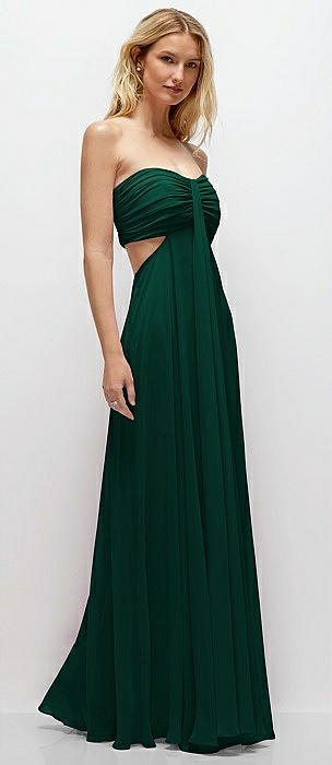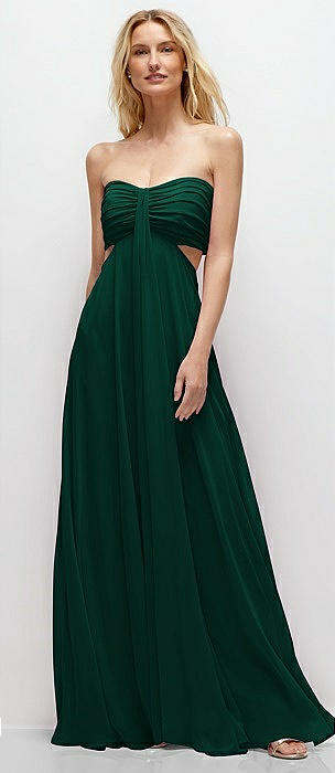 Strapless Empire Waist Cutout Maxi Dress with Covered Button Detail in hunter green