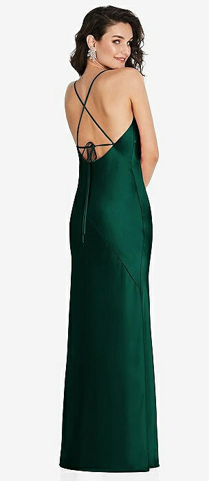 V-Neck Halter Satin Trumpet Gown in hunter green