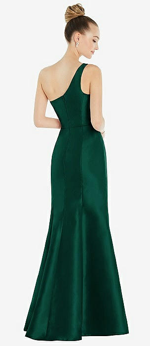 One-Shoulder Draped Skirt Satin Trumpet Gown in hunter green