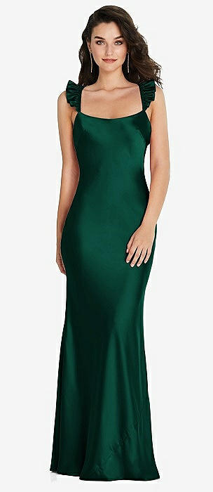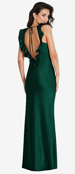Ruffle Trimmed Open-Back Maxi Slip Dress in hunter green