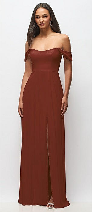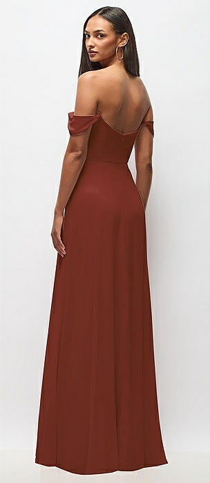 Off-the-Shoulder Basque Neck Maxi Dress with Flounce Sleeves in auburn moon