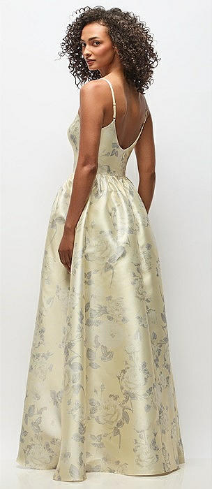 Scoop Neck Drop Basque Skirt Floral Satin Maxi Dress with Pockets