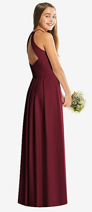 Stand Collar Halter Maxi Dress with Criss Cross Open-Back in cabernet
