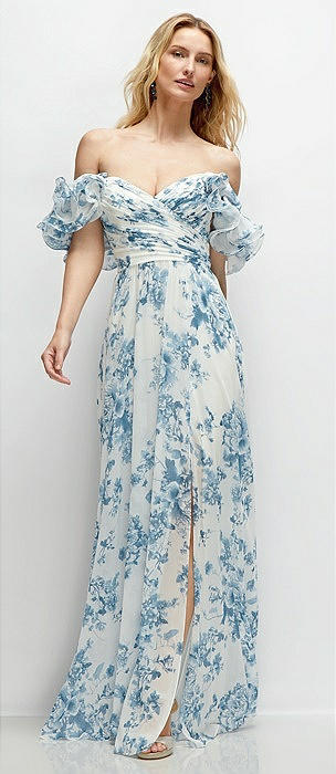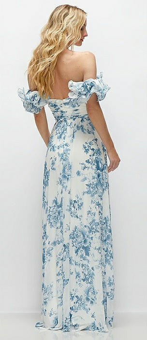 Dramatic Ruffle Edge Strap Chiffon Maxi Dress in cottage rose dusk blue