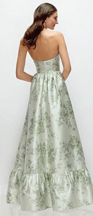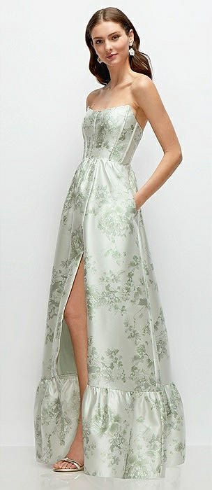 Floral Satin Corset Maxi Dress with Ruffle Straps & Skirt in sage cottage rose