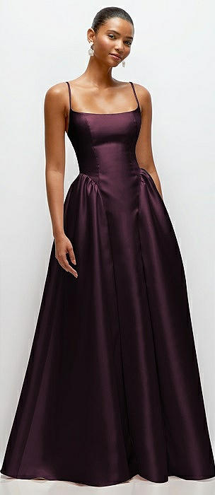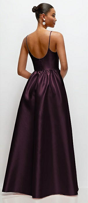 Scoop Neck Drop Basque Skirt Satin Maxi Dress with Pockets in deep plum