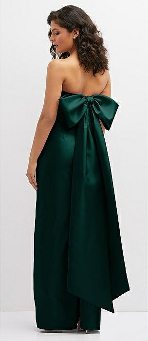 Strapless A-line Satin Gown with Modern Bow Detail in evergreen