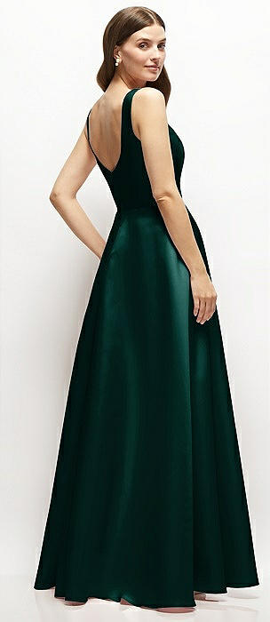 Open Neckline Cutout Satin Twill A-Line Gown with Pockets in evergreen