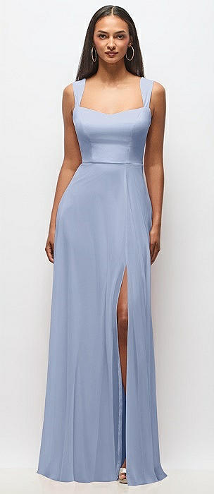 Contoured Wide Strap Sweetheart Maxi Dress in sky blue