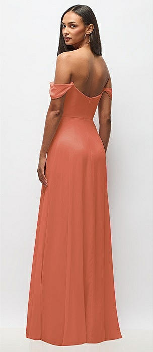 Off-the-Shoulder Basque Neck Maxi Dress with Flounce Sleeves in terracotta copper