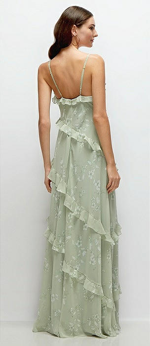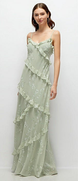 Dramatic Ruffle Edge Strap Chiffon Maxi Dress in vintage primrose sage