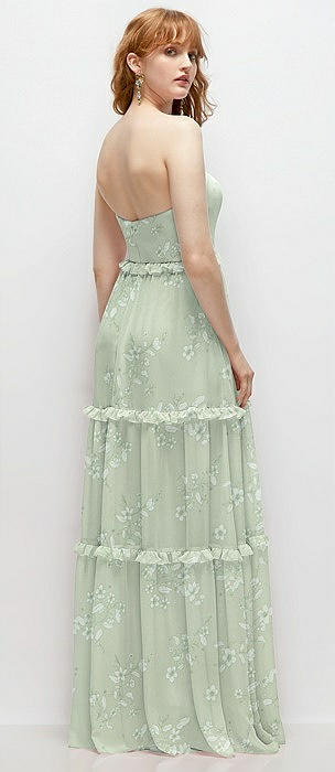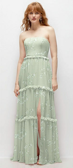 Strapless Chiffon Maxi Dress with Tiered Micro Ruffle Full Skirt in vintage primrose sage