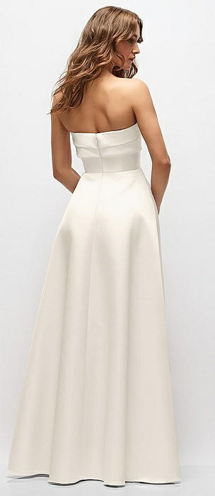 Strapless Bias Cuff Bodice Satin Gown with Pockets in ivory