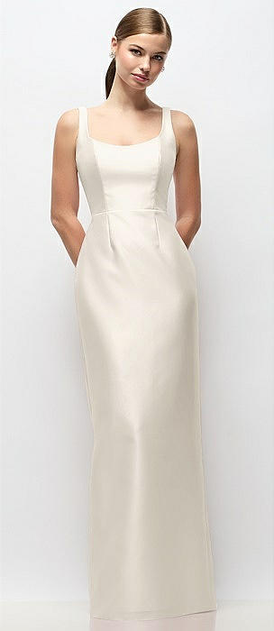 Scoop Neck Satin Column Maxi Dress in ivory