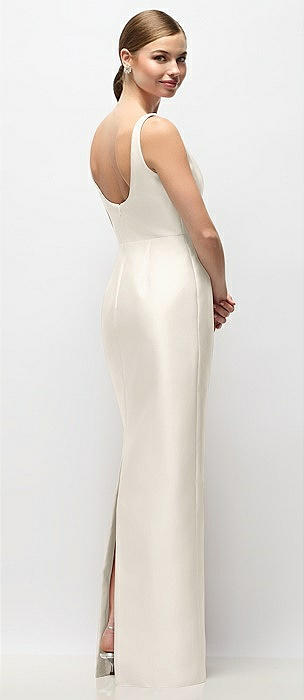 Strapless Satin Column Dress with Back Slit in ivory