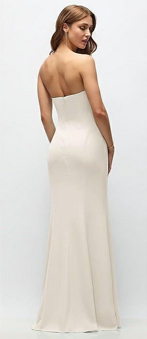 Strapless Scoop Back Maxi Dress with Front Slit in ivory