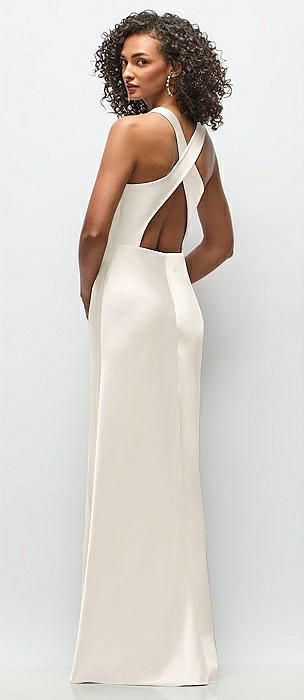 Cowl Neck Criss-Cross Back Satin Maxi Dress in ivory