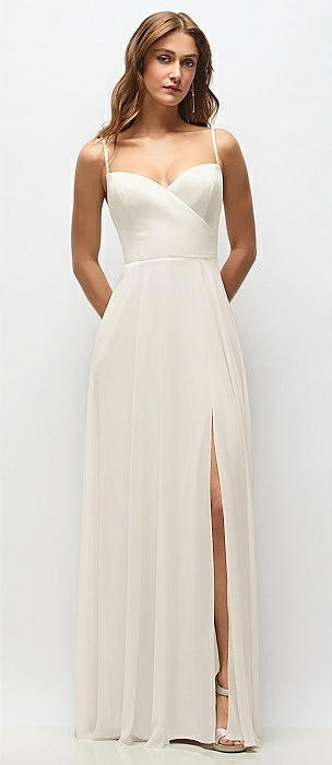 Wrap Bodice Chiffon Maxi Dress with Adjustable Spaghetti Straps in ivory