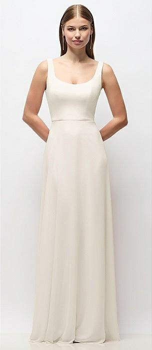 Scoop Neck Tank Strap Chiffon Maxi Dress in ivory