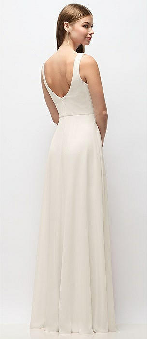 Bow-Shoulder V-Back Chiffon Gown with Front Slit in ivory