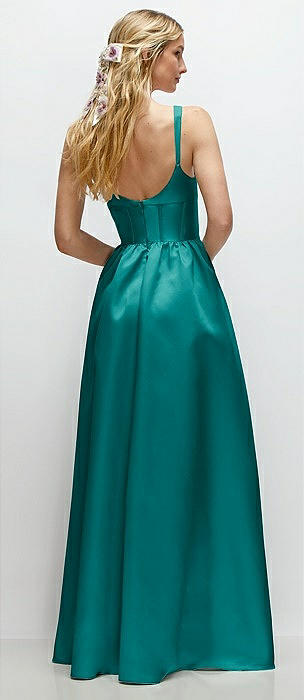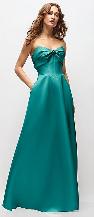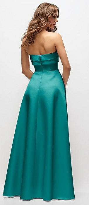 Strapless Bias Cuff Bodice Satin Gown with Pockets in jade