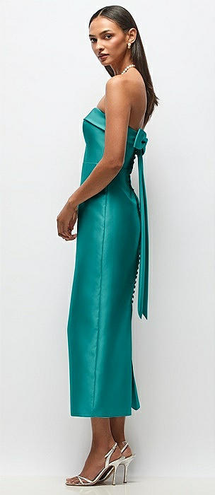 Strapless Cuff Satin Midi Dress with Column Skirt & Back Bow in jade