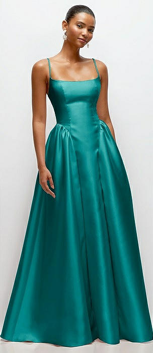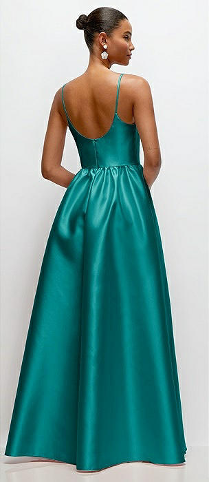 Scoop Neck Drop Basque Skirt Satin Maxi Dress with Pockets in jade
