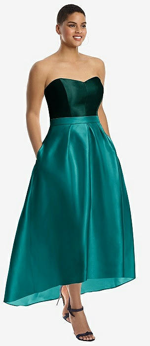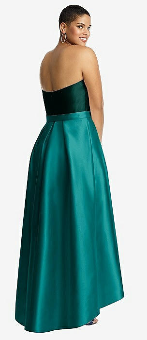 Strapless Satin High Low Dress with Pockets in jade