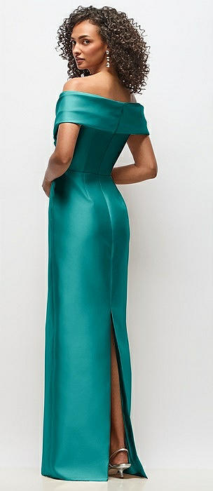 Off-the-Shoulder Cuff Trumpet Gown with Front Slit in jade