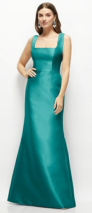 Satin Square Neck Fit and Flare Maxi Dress in jade
