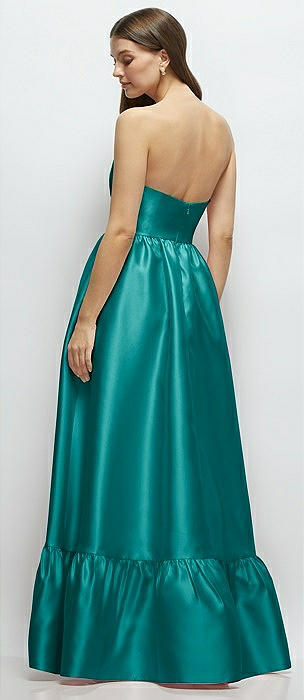 Strapless Satin High Low Dress with Pockets in jade