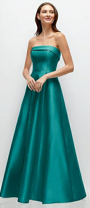 Strapless Bias Cuff Bodice Satin Gown with Pockets in jade