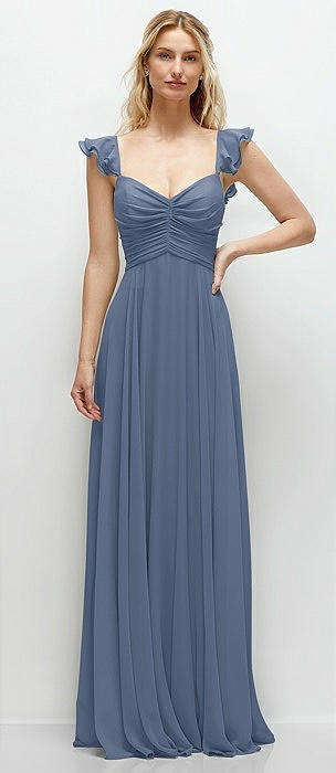 Convertible Ruffle Strap Chiffon Maxi Dress with Full Circle Skirt in larkspur blue