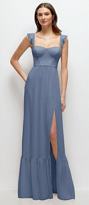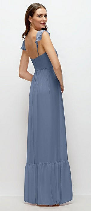 Ruffle Strap Chiffon Bustier Maxi Dress with Ruffle Hem A-Line Skirt in larkspur blue