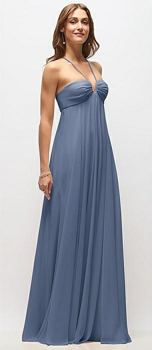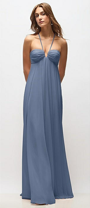 Empire Waist Chiffon Halter Maxi Dress with Convertible Spaghetti Straps in larkspur blue