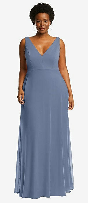 Deep V-Neck Chiffon Maxi Dress in larkspur blue