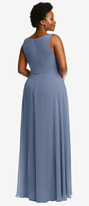Sleeveless Square-Neck Princess Line Gown with Pockets in larkspur blue