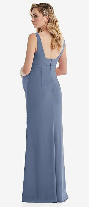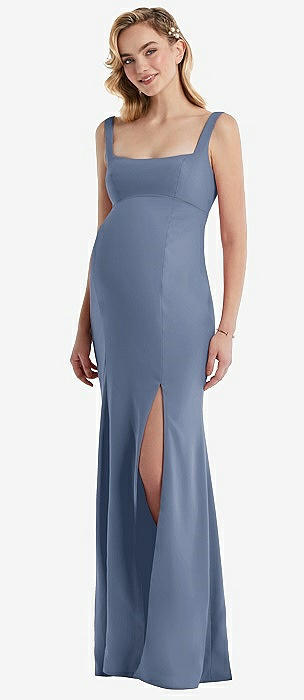 Wide Strap Square Neck Maternity Trumpet Gown in larkspur blue